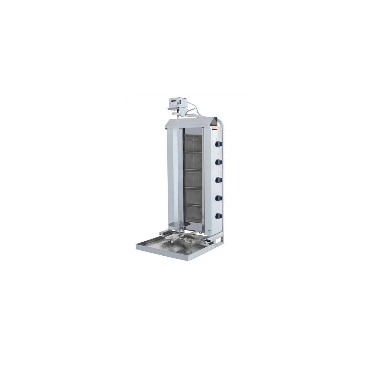 Gas Dönergrill mit Motor oben / Gyrosgrill 5 Brenner Beweglich / max. 80 kg / inkl. Flügeltüren