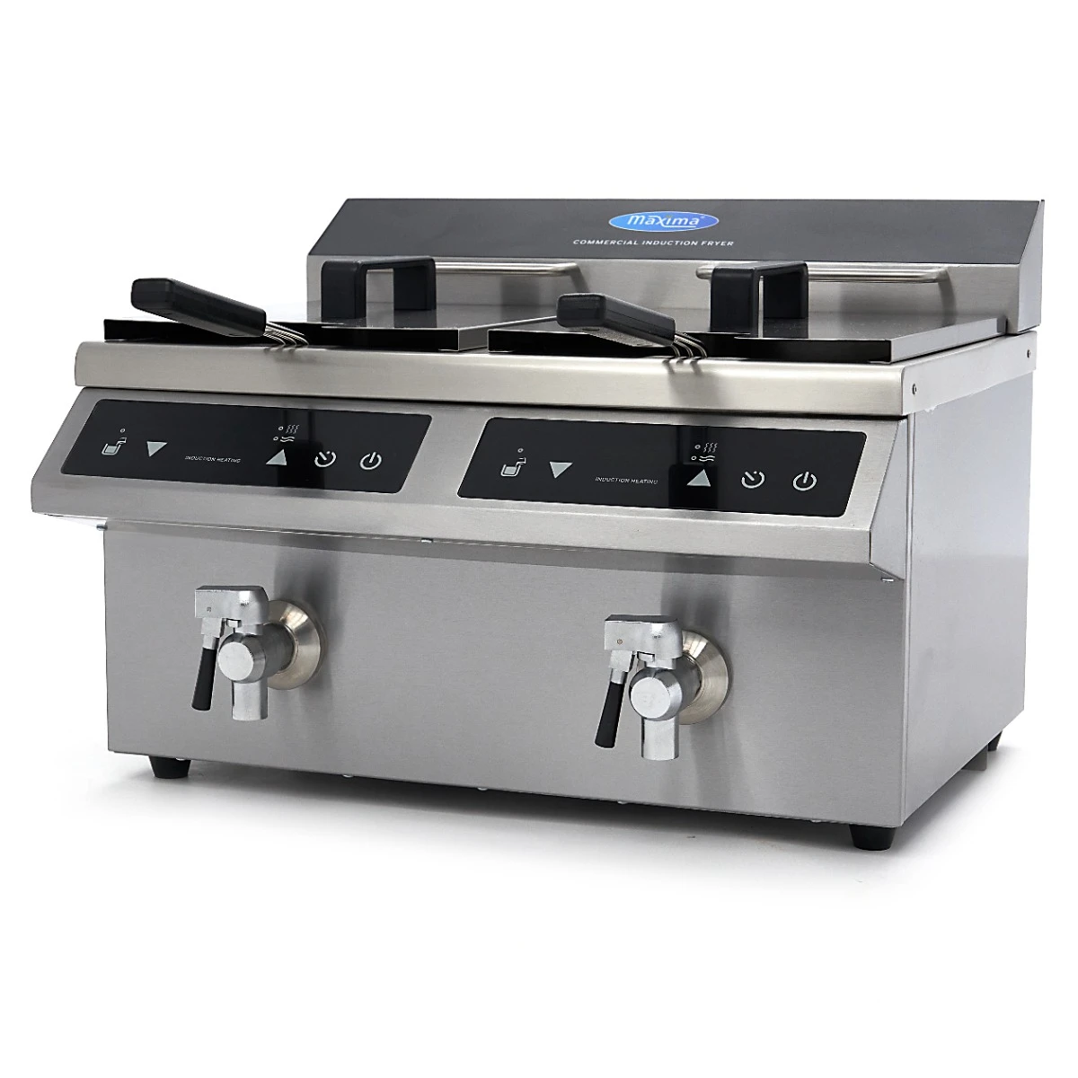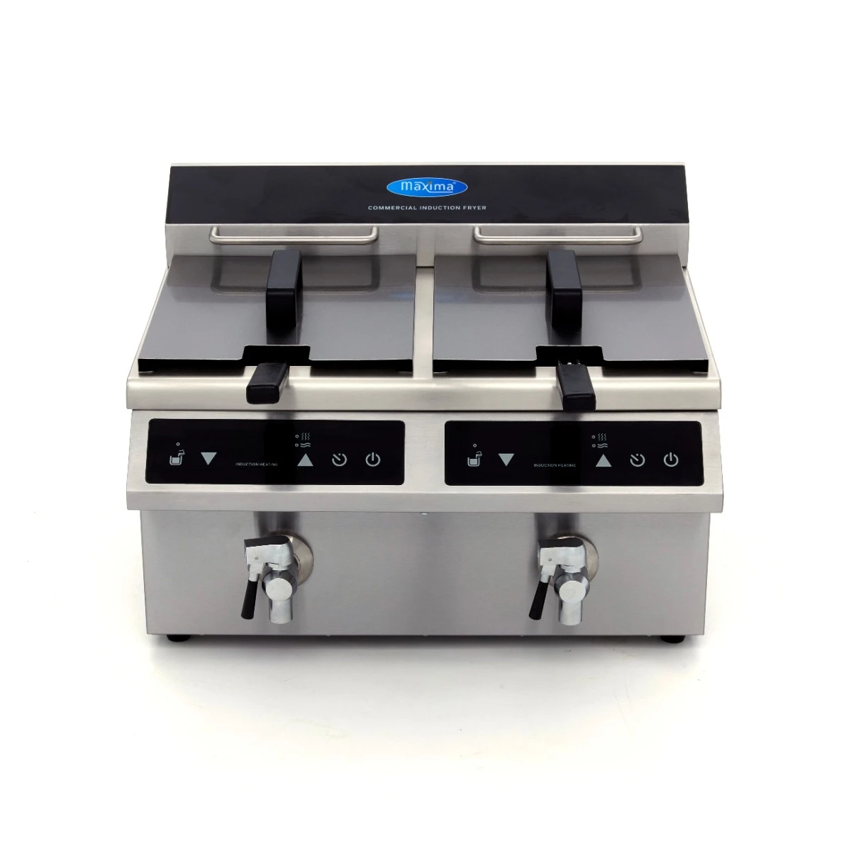 Gastro Fritteuse – 2 x 8 l – 2 Körbe – mit Ablasshahn – Induktion