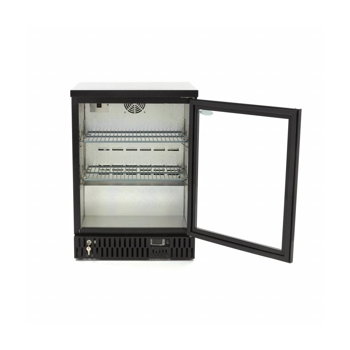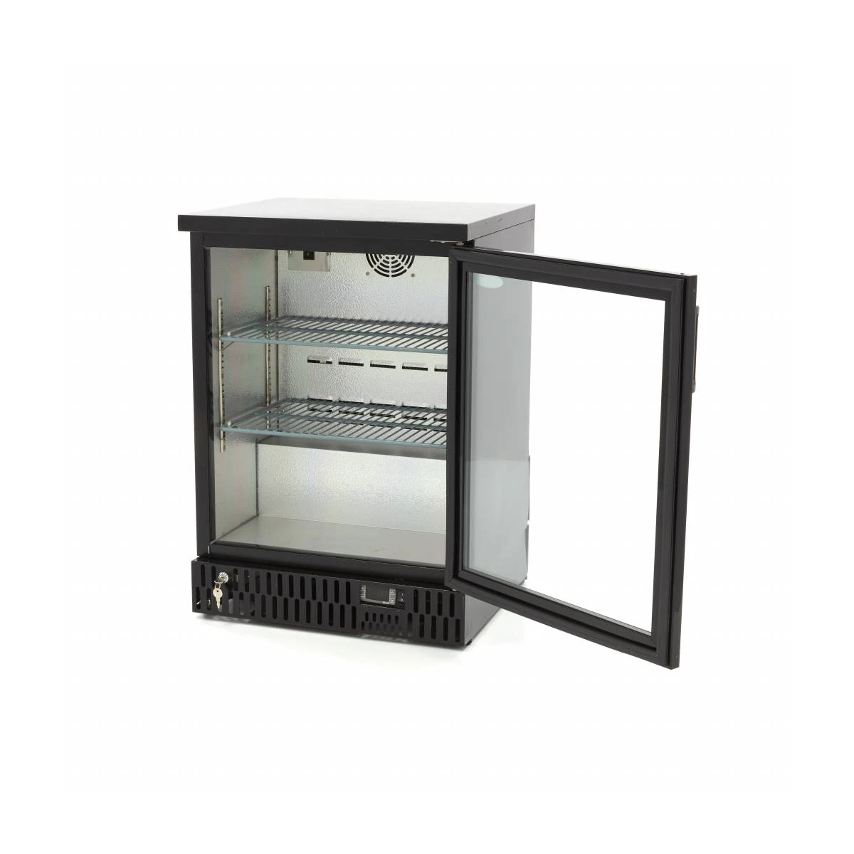 Dieser Getränkekühlschrank ist luxuriös verarbeitet und sieht auf jeder Bar oder Theke professionell aus. Erhältlich in Schwarz und mit einem Fassungsvermögen von 136 l ist dies das ideale Gerät, um Produkte kühl zu halten. Getränke und sogar Snacks sehen dank der eingebauten LED-Beleuchtung ansprechend aus. Dank der aufklappbaren Glastür können Getränke schnell und einfach entnommen oder ausgetauscht werden. Die Tür kann auch verschlossen oder offen gelassen werden, damit sich die Kunden selbst bedienen können.