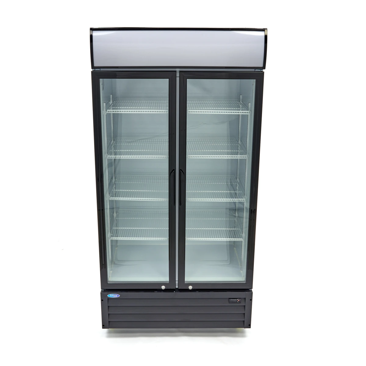 Wenn Sie genügend Platz in Ihrer Küche oder Ihrem Gastronomiebetrieb haben, ist dieser professionelle Getränkekühlschrank sehr nützlich. Er hält eine große Menge an Vorräten gekühlt. Dank der eingebauten LED-Beleuchtung werden alle Produkte zudem ansprechend präsentiert. Das Werbepaneel auf der Oberseite des Kühlschranks ist ideal für die Präsentation verschiedener Werbebotschaften. Für eine bessere Sichtbarkeit ist das Paneel außerdem mit einer Hintergrundbeleuchtung ausgestattet. Dieser Getränkekühlschrank ist mit zwei Flügeltüren mit Doppelverglasung ausgestattet, die jeweils mit einem eingebauten Schloss verschlossen werden können.