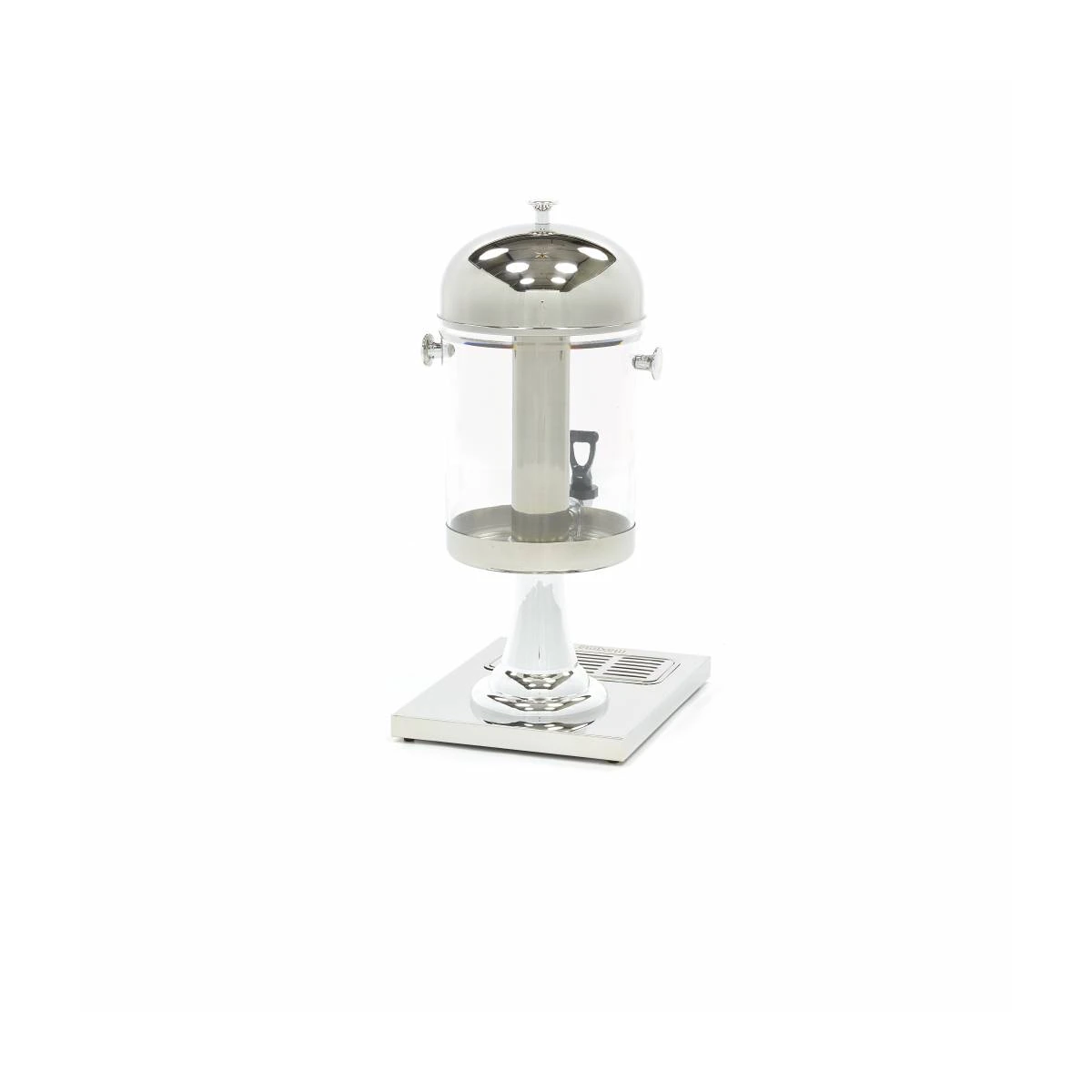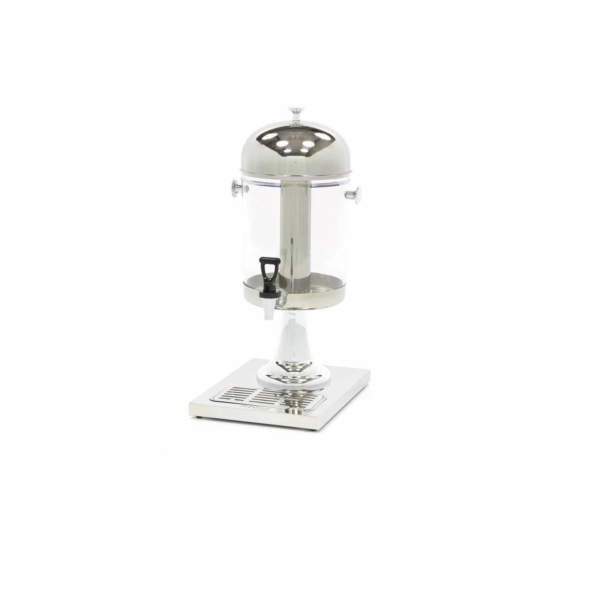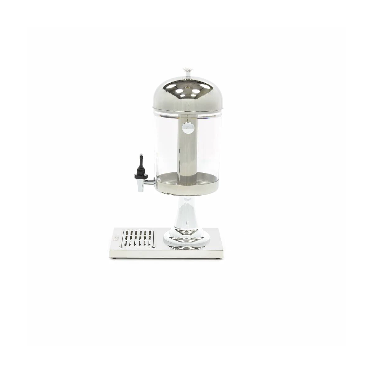 Dieser stilvoll gestaltete Getränkespender eignet sich für die Präsentation von Saft, Slushies und anderen Getränken. Er kann auch als Selbstbedienungsoption in Gastronomiebetrieben zur Selbstbedienung verwendet werden. Zum Beispiel bei Frühstücksbuffets in Hotels oder auf der Getränkeinsel in Fastfood-Restaurants und Cafeterias. Dieser Getränkespender eignet sich auch für den Ausschank von eiskaltem Wasser, Softdrinks und frisch zubereiteter Limonade. Dieser Getränkespender hat ein Gesamtfassungsvermögen von 8 l. Sie können ihn mit Gläsern verwenden, die eine maximale Höhe von 15 cm haben.