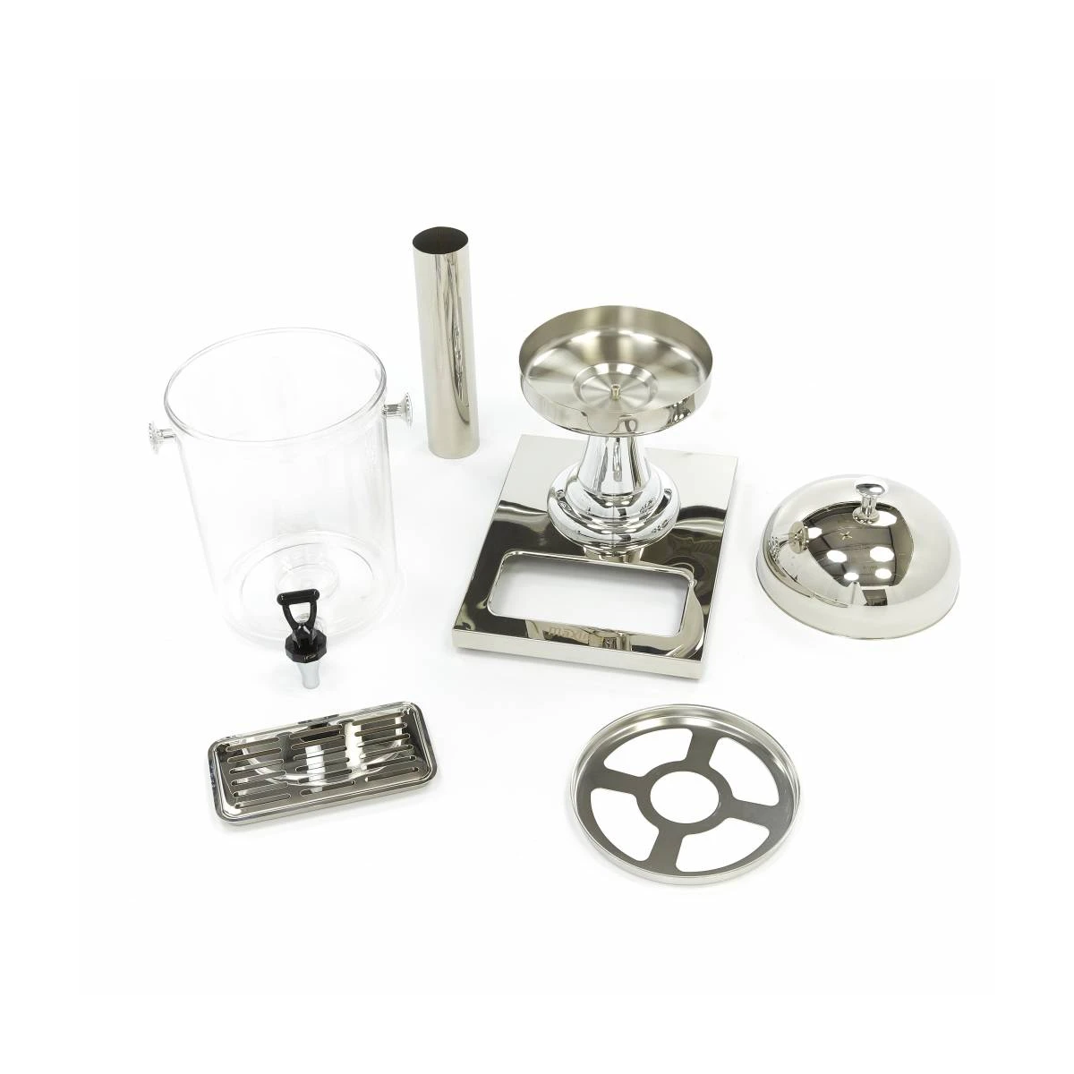Einer der Hauptvorteile dieses Getränkespenders besteht darin, dass er ganz ohne Strom oder Energie betrieben werden kann. Die Flüssigkeit wird in dem 100 % BPA-freien Tank mit Hilfe eines Edelstahlrohrs in der Mitte, das mit Eis gefüllt ist, kühl gehalten. Das Gehäuse des Spenders ist aus Edelstahl gefertigt, der sowohl kratzfest als auch leicht zu reinigen ist. Er verfügt über einen transparenten Behälter, damit die Gäste das Produkt besser sehen und ihre Wahl treffen können. Der robuste Sockel und das moderne Design sorgen dafür, dass der Spender nicht nur professionell aussieht, sondern auch stabil ist. An der Seite jedes Behälters befinden sich außerdem zwei Griffe, die das Anheben erleichtern.