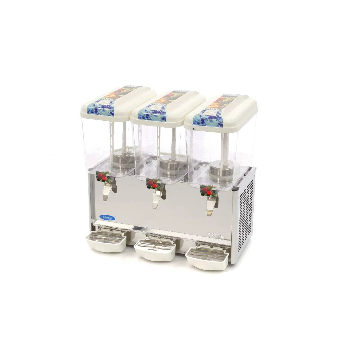 Der professionelle Getränkespender präsentiert den Kunden nicht nur stilvoll die Getränke, sondern ermöglicht es ihnen auch, sich über das praktische Zapfsystem selbst zu bedienen. Das macht ihn zu einem idealen Gerät für jeden Gastronomiebetrieb, der seine Gäste schnell und effizient bedienen möchte. Auch hinter jeder Bar oder Theke ist er von Vorteil. Der Spender kann eine Vielzahl von Getränken wie Limonaden, Wasser, Saft und sogar Smoothies aufnehmen. Er verfügt über drei 18-Liter-Tanks aus Polycarbonat mit einer Gesamtkapazität von 54 Litern und ist zu 100 % BPA-frei.