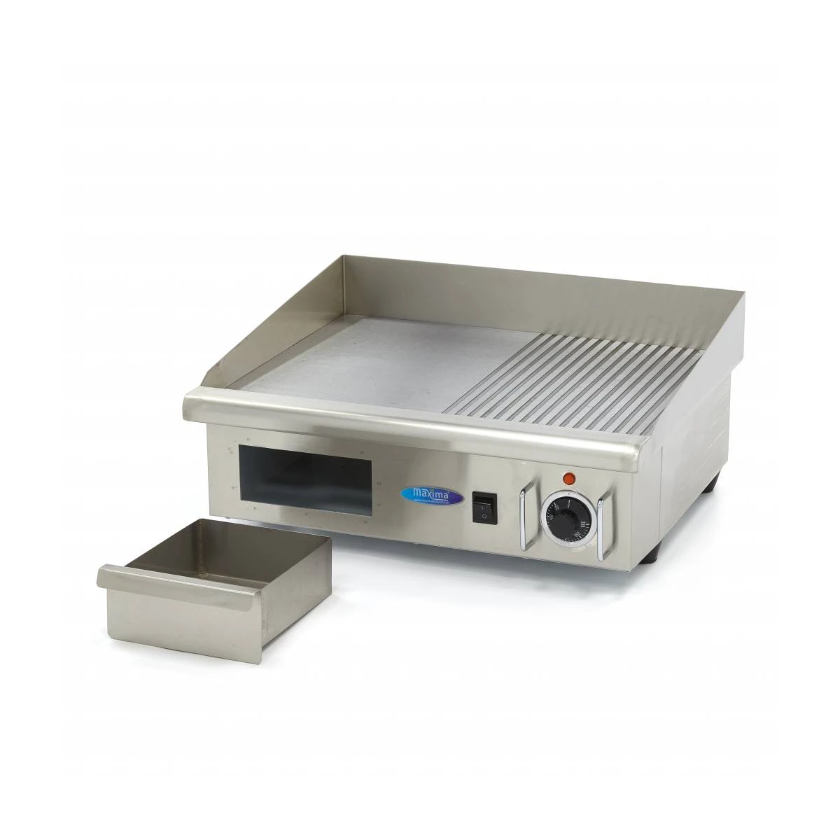 Um Ihren Fleisch-, Fisch- oder Gemüsegerichten noch mehr Geschmack zu verleihen, können Sie sie auf einer Grillplatte zubereiten. Auf diese Weise bleiben Geschmack und Vitamine länger erhalten. Ein weiterer Vorteil der Griddle ist, dass die Produkte schnell gegart werden. Diese elektrische Griddle heizt schnell auf. Und wenn Sie das Gerät danach reinigen wollen, müssen Sie nicht lange warten, denn die Grillplatte kühlt schnell ab. Diese professionelle Griddle hat eine glatte und gerillte 6-mm-Griddle. Dank des leistungsstarken Heizelements ist diese Griddle für den intensiven täglichen Gebrauch geeignet und die Speisen werden gleichmäßig gegart.