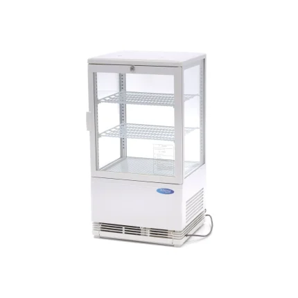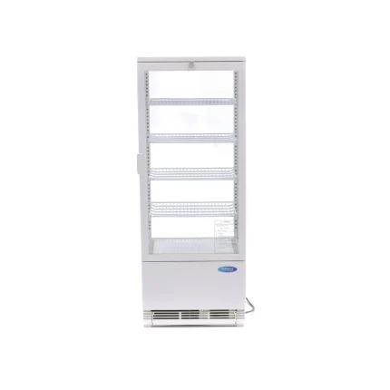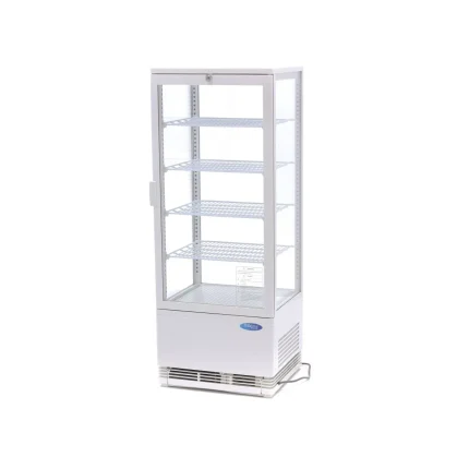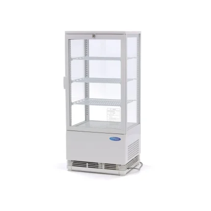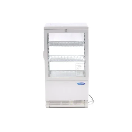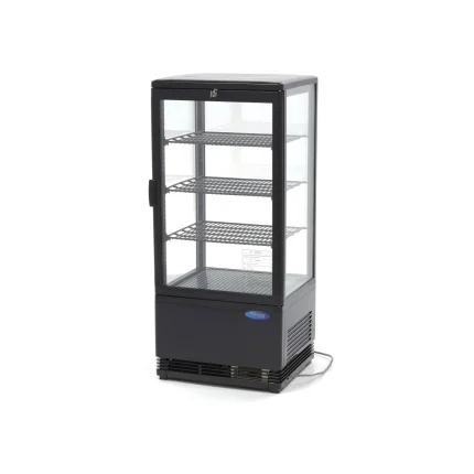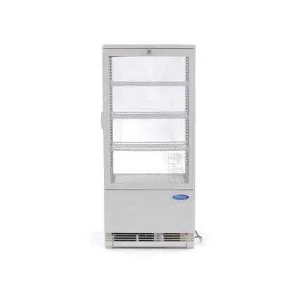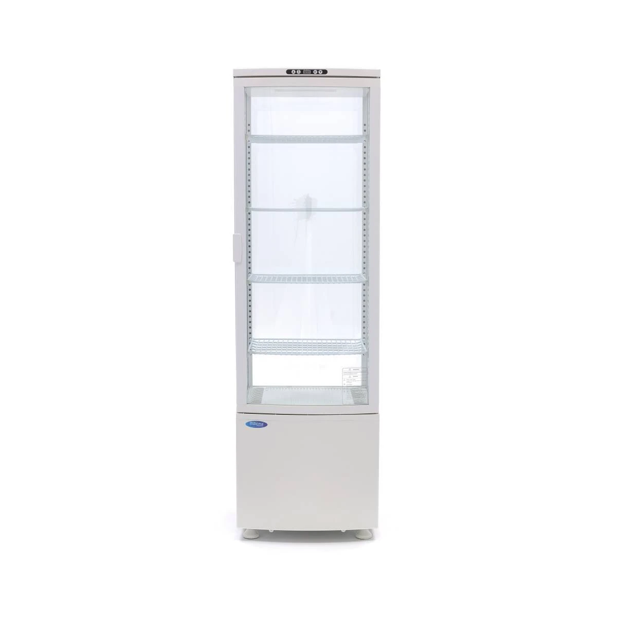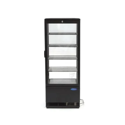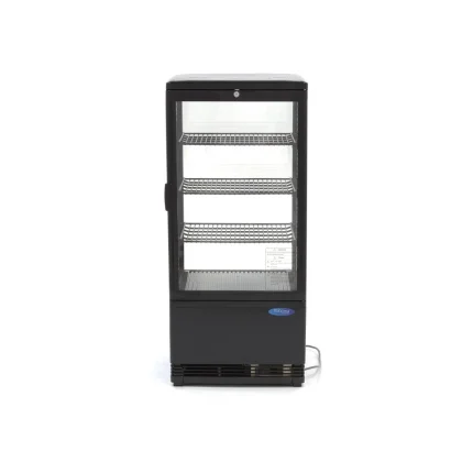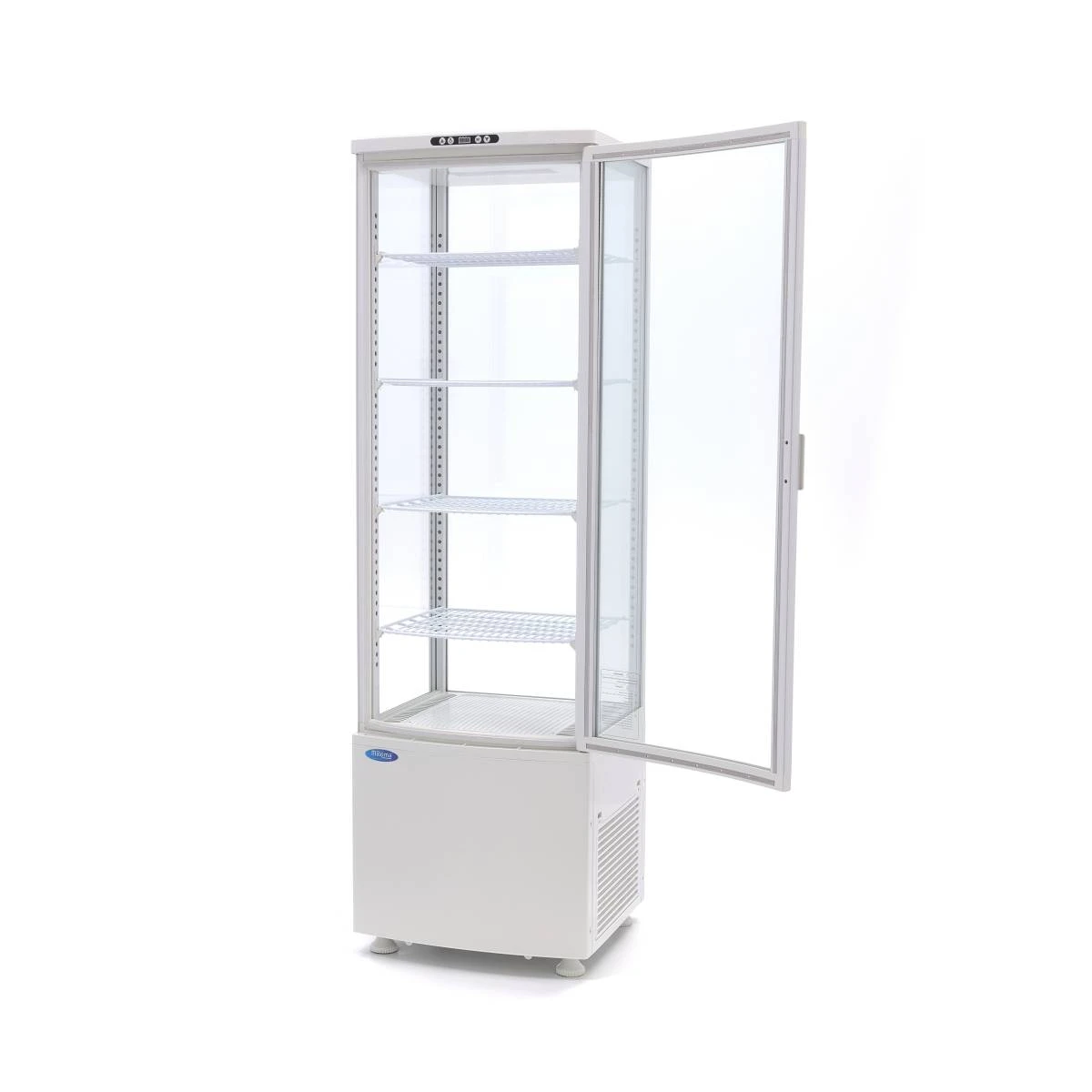 Dieser hochwertige, professionelle Display-Kühlschrank hat ein großes Fassungsvermögen von 235 Litern und bietet Platz für die Präsentation mehrerer Lebensmittel. Die Möglichkeit, Ihre Produkte zu präsentieren, ist in der Lebensmittelbranche wichtig, da die Kunden gerne sehen, welche Möglichkeiten sie haben. Dank der großen Fenster auf jeder Seite und der energieeffizienten LED-Innenbeleuchtung fallen die Produkte ins Auge. Diese Kühlvitrine wird mit vier verstellbaren Einlegeböden geliefert. Außerdem können Sie über unsere Website weitere Einlegeböden bestellen, wenn Sie das Fassungsvermögen des Kühlschranks noch weiter erhöhen möchten. Mit dem eingebauten Schloss, das mit zwei Schlüsseln geliefert wird, können Sie die Kühlvitrine auch abschließen.