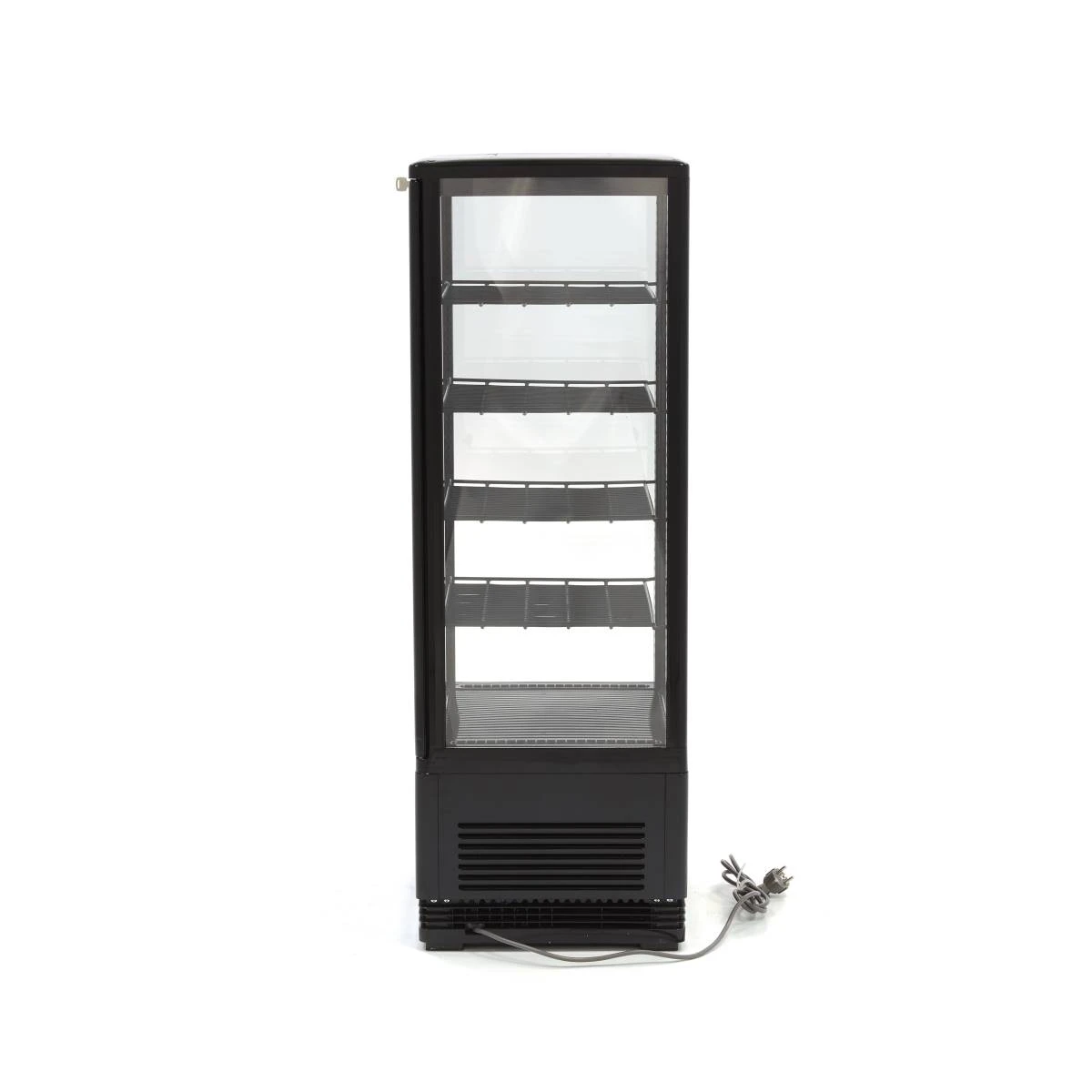Diese robuste Kühlbox hat ein großes Fassungsvermögen von 98 Litern. Die Kühlvitrine wird standardmäßig mit vier Einlegeböden geliefert. Wenn Sie häufig kleinere Artikel, wie z. B. Dosen, in Ihrer Auslage platzieren, kann diese Kühlvitrine leicht mit zusätzlichen Fächern erweitert werden. Dank der Gebläsekühlung werden die Produkte gleichmäßig kühl gehalten, unabhängig davon, wo sie sich im Kühlschrank befinden. Die stabilen Füße der Kühlvitrine sorgen dafür, dass das Gerät stabil und an seinem Platz bleibt. Dank der vier Glasfenster und der energieeffizienten LED-Beleuchtung ist diese Kühlvitrine ein echter Hingucker bei der Präsentation Ihres Sortiments beim Kunden. Alle Ihre Produkte werden auf eine schöne und professionelle Weise präsentiert. Darüber hinaus ist die Vitrine mit einem Schloss und zwei Schlüsseln ausgestattet.