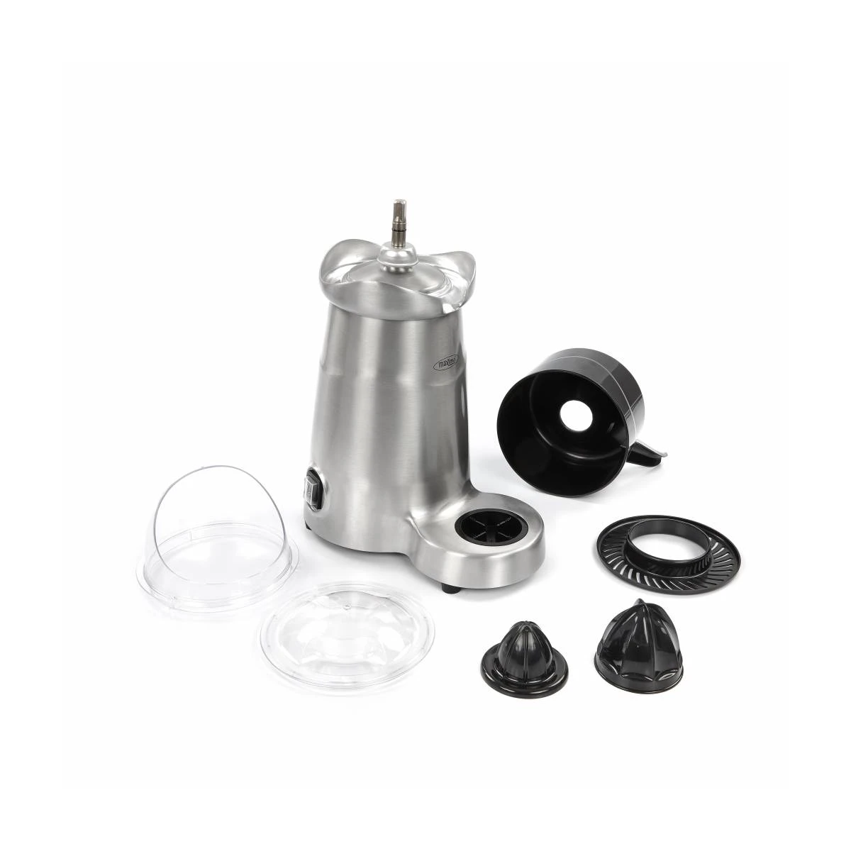 Der leistungsstarke, aber leise Motor mit 1.800 Umdrehungen pro Minute sorgt dafür, dass Sie schnell und einfach 32 Liter Saft pro Stunde auspressen können. Der Entsafter verfügt nicht nur über einen Presskopf für Orangen, sondern auch über Pressköpfe für Limetten und Grapefruits. Die praktische Auffangschale sorgt für ein sauberes und ordentliches Arbeiten mit diesem Küchengerät. Der Entsafter ist außerdem mit einem herausnehmbaren Filter ausgestattet, der Kerne und Fruchtfleisch auffängt. Der Entsafter verfügt über eine Antriebswelle aus Edelstahl und wasserfeste Tasten. Außerdem verfügt er über einen Überhitzungsschutz, der den Motor vor Überhitzung schützt.