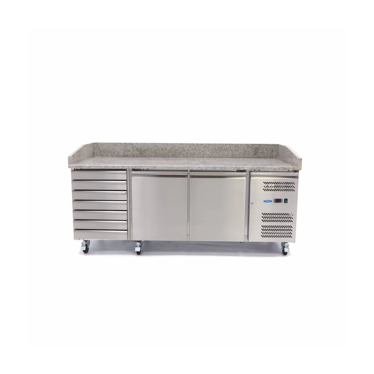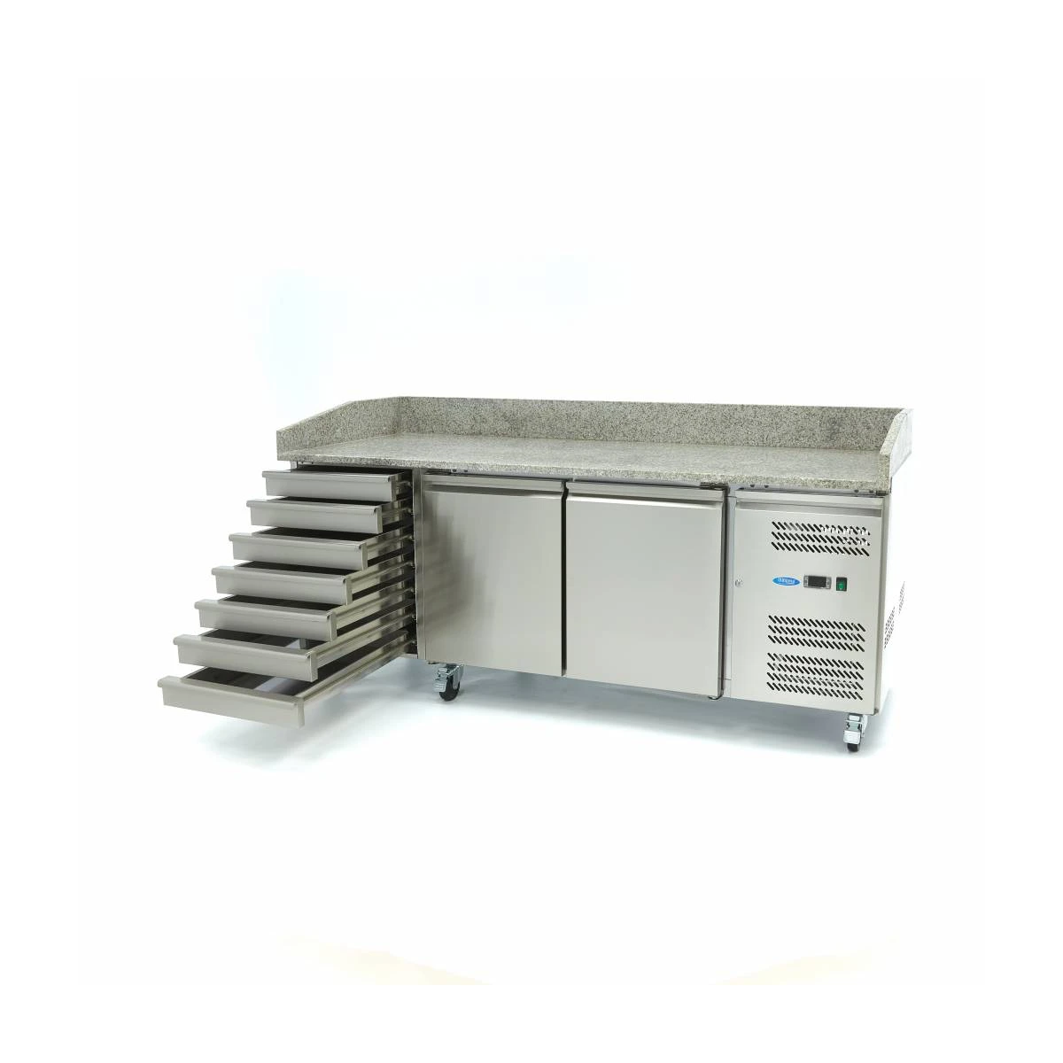 Gastro Pizzakühltisch – 202 cm – 2 Türen – Passt 5 x 1/6 GN – 7 Schubladen