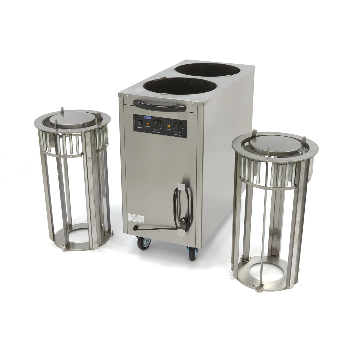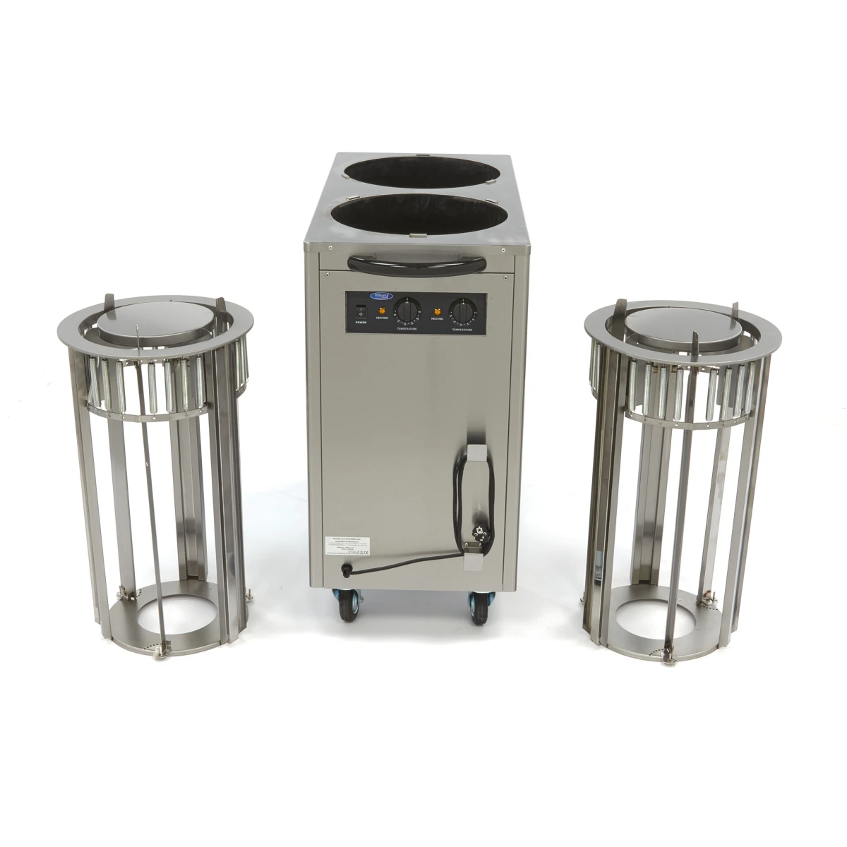 Warme Mahlzeiten werden am besten auf vorgewärmten Tellern serviert, damit die Speisen so lange wie möglich die ideale Temperatur haben. Mit diesem professionellen Tellerwärmer aus Edelstahl können Sie bis zu 80 Teller stapeln, um sie zu erwärmen und warm und gebrauchsfertig zu halten. Die maximale Größe der Teller, die in diesen Tellerwärmer passen, beträgt 30 cm. Er ist ein sehr praktisches Gerät für das Küchenpersonal, denn dank des praktischen Aufhängesystems können Sie schnell Teller für Teller aufnehmen.