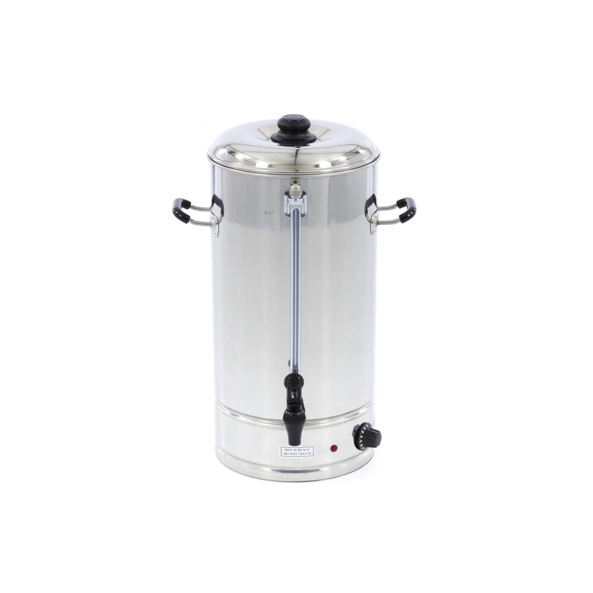 Dieser praktische Heißwasserspender ist ideal für die Zubereitung großer Mengen heißer Getränke, wie z. B. Tassen Tee, für große Gruppen. Er fasst bis zu 20 Liter Wasser auf einmal und hält es auf der perfekten Temperatur, sodass es bei Bedarf sofort zur Verfügung steht. So haben Sie immer genügend heißes Wasser auf Lager, um Ihre Gäste sofort zu bedienen. Er ist das perfekte Küchengerät für jeden Gastronomiebetrieb oder jede Veranstaltung. Der Deckel ist mit einem Knopf versehen, der sich leicht anheben lässt, und da er aus Kunststoff besteht, wird er nicht heiß. Dank der praktischen Tragegriffe an der Seite, die gut isoliert sind, ist es auch möglich, den Spender zu bewegen, ohne sich zu verbrennen. Es dauert 20-30 Minuten, bis das Wasser heiß genug ist, um eine perfekte Tasse Tee zu kochen.