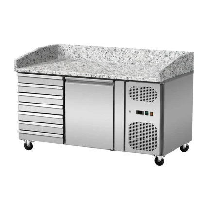 Pizza Kühltisch, Granit rosa-grau,1 Tür 7 ungek. Schubladen, 151 x 80