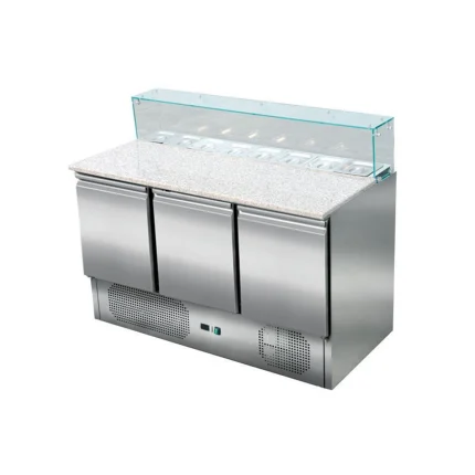 Pizzasaladette 3 Türen, Aufsatz Edelstahl,137 x 70