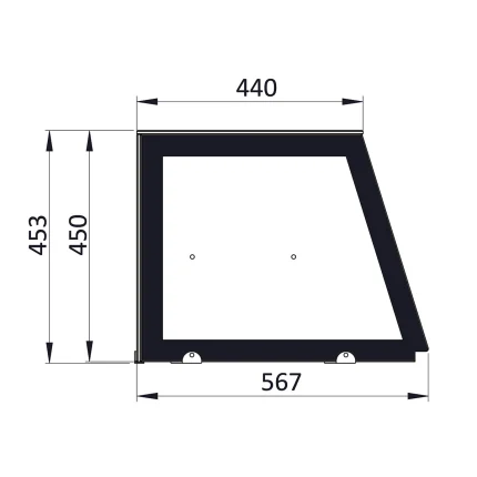 Saladette 2 Türen, 90 x 70 gerader Glasaufbau, Klarglas mit schwarzem Rand