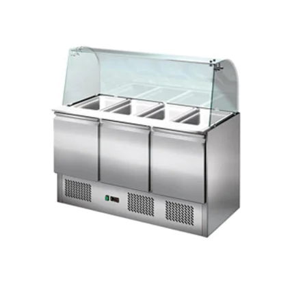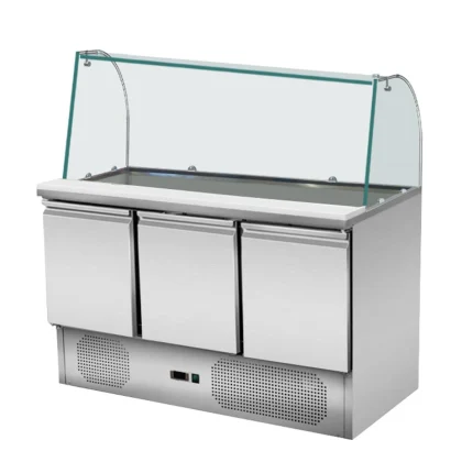 Saladette 3 Türen, 137 x 70 gebogener Glasaufbau, Klarglas